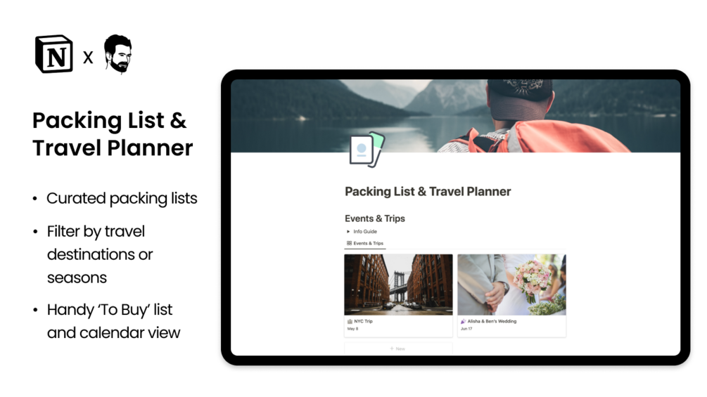 - Customise the curated packing lists with all of the your items needed on a trip somewhere (personal or business)